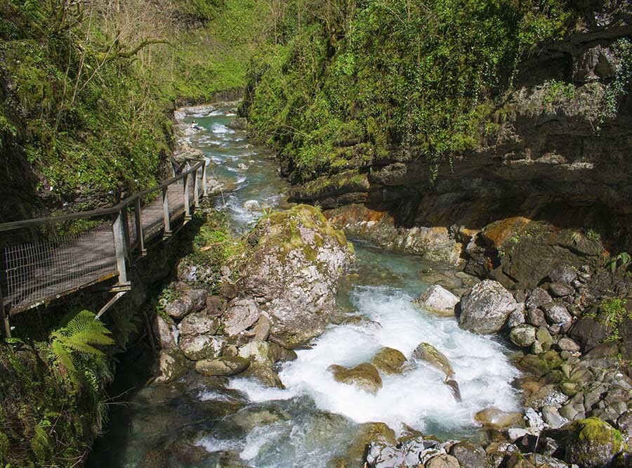 Espectacular desfiladero en el País Vasco francés, con pasarelas y senderos junto a paredes de roca y cascadas. Una excursión única desde Ochagavía.