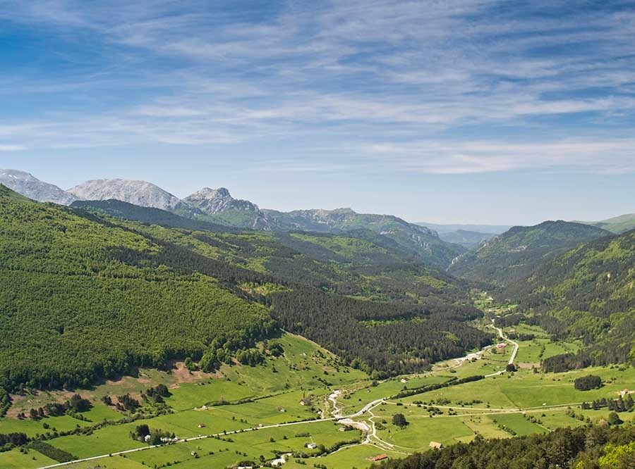 Valle navarro de gran belleza natural, con bosques frondosos, cuevas y pequeñas aldeas que conservan la esencia rural.